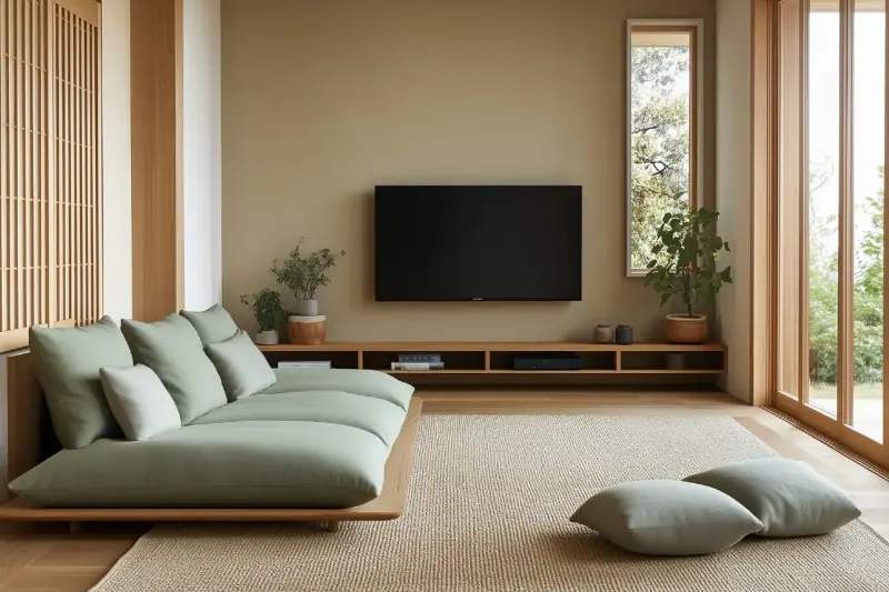 日式居家設計很重視「留白」的美感。適度留出空間,讓人有舒展身心的餘地。例如客廳不必堆滿家具,只需一張低矮沙發,搭配輕便的邊几及幾盆綠色植物,營造出寧靜自然的氛圍。牆面多留白,讓整體更顯清爽,避免過於花俏的裝飾。這種設計不僅視覺上舒適,也讓人心情放鬆。