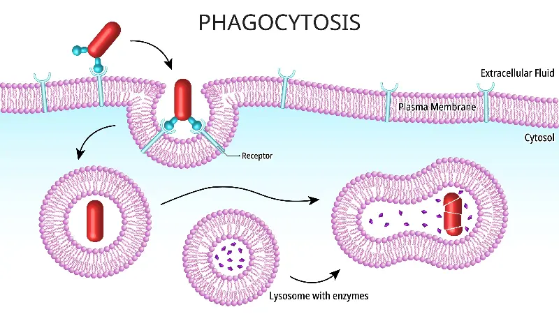 最為人知的巨噬細胞功能,就是吞噬(phagocytosis)。當細菌、病毒、死亡細胞,甚至是空氣中的污染微粒入侵體內時,巨噬細胞便衝鋒陷陣,將這些「外來者」包圍與吞噬,透過內部的酵素將之分解。這不僅防止病原體肆虐,還能清除體內細胞垃圾,維持組織的健康與清潔。