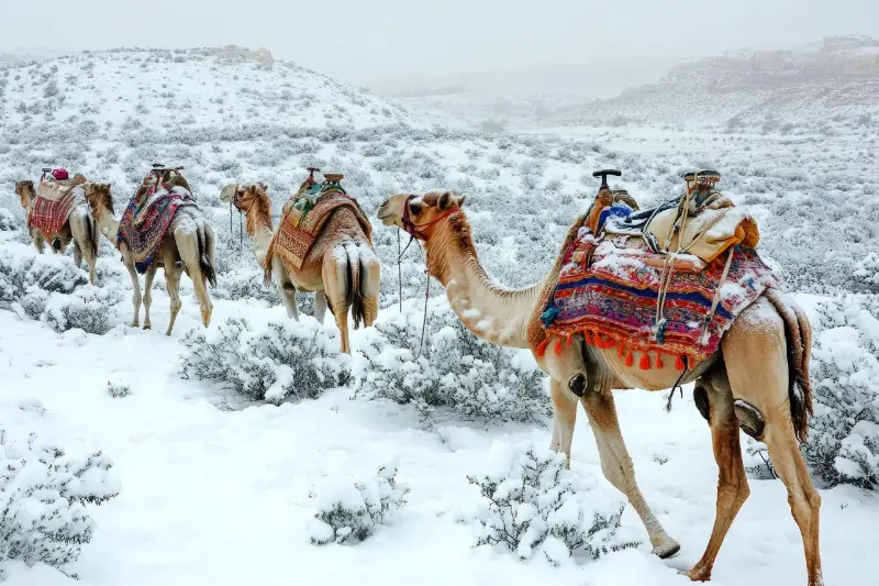 撒哈拉遇雪,除了令人讚嘆的自然景觀,也為旅遊愛好者提供了全新體驗。每當雪花覆蓋金黃沙丘,整片沙漠彷彿穿上一層銀白斗篷,寧靜、壯觀,還會產生獨特的「冰火交融」視覺效果。攝影愛好者們更是爭相前往,只為捕捉這全世界獨一無二的鏡頭。當地居民有時也會拍下照片,在社群媒體引起熱烈討論。